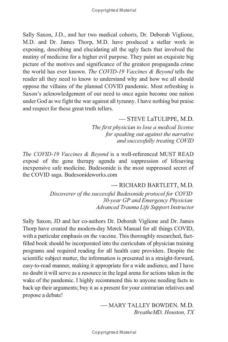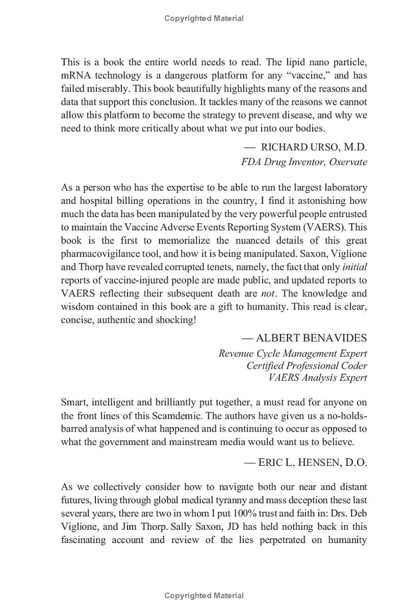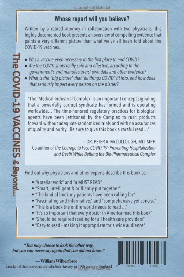 Written by a retired attorney in collaboration with two physicians, this highly-documented book presents an overview of the compelling evidence that tells a very different story than we've been told regarding the core issues surrounding the COVID-19 vaccines, and why this is a story that everyone needs to know: