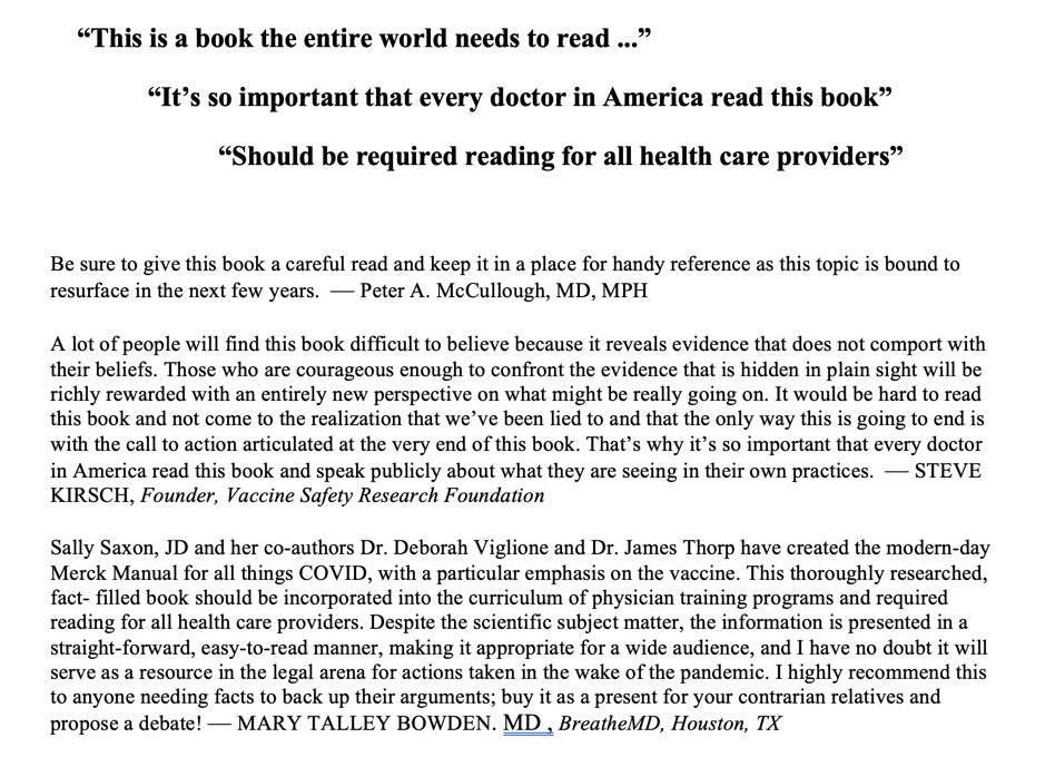 When you read it, your world may never be the same again. The evidence is compelling that those in the "medical industrial complex" we trusted to protect us have been lying about “all things COVID” from the beginning.