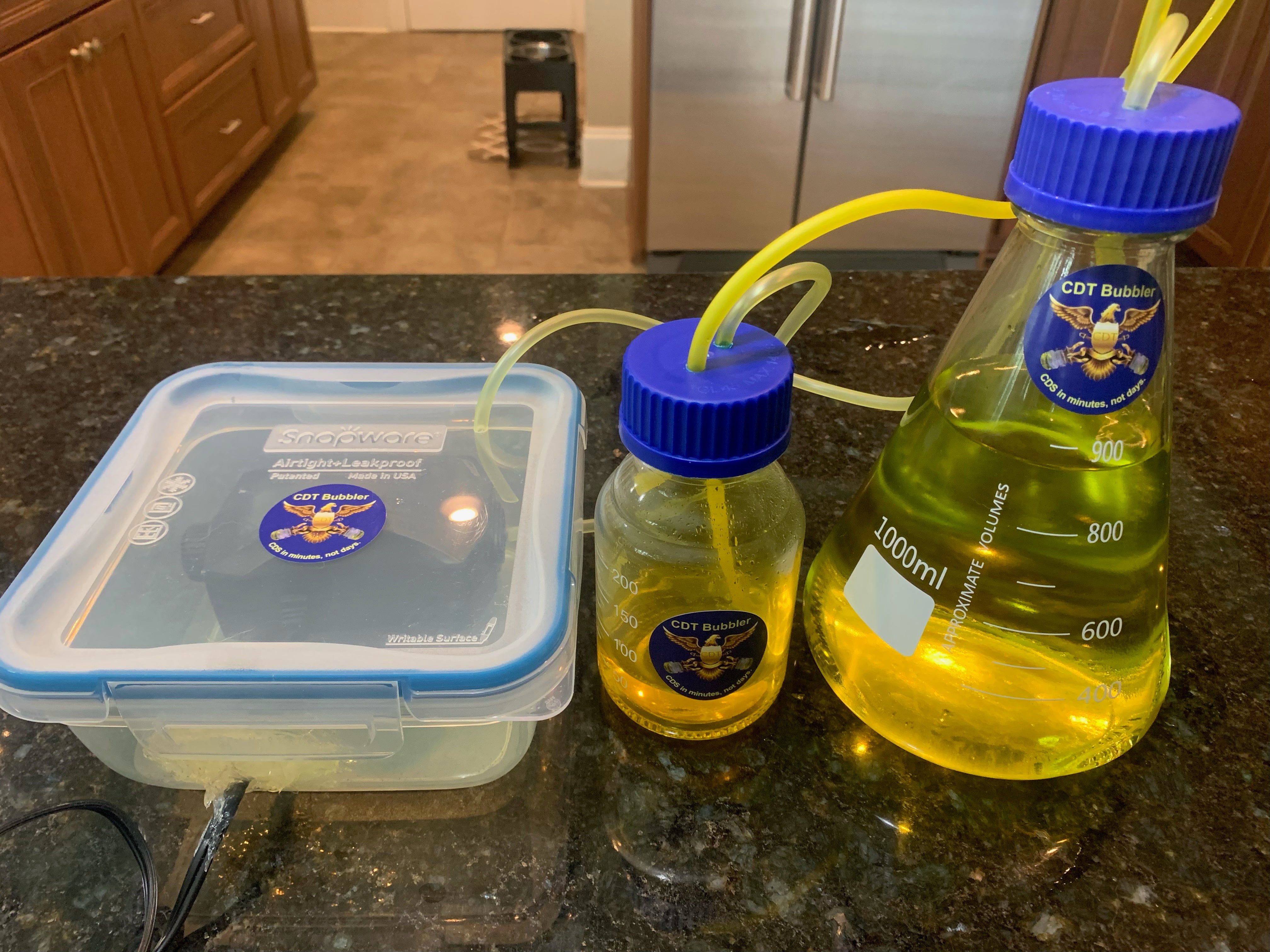 Tired of slow, messy CDS production? The CDT CDS Bubbler is amazing. Create your own CDS with this fabulous kit. Makes 3,000 ppm CDS in 10 minutes, not two days. Snoot! Spray does NOT sell Chlorine Dioxide solution, nor the components to make it.